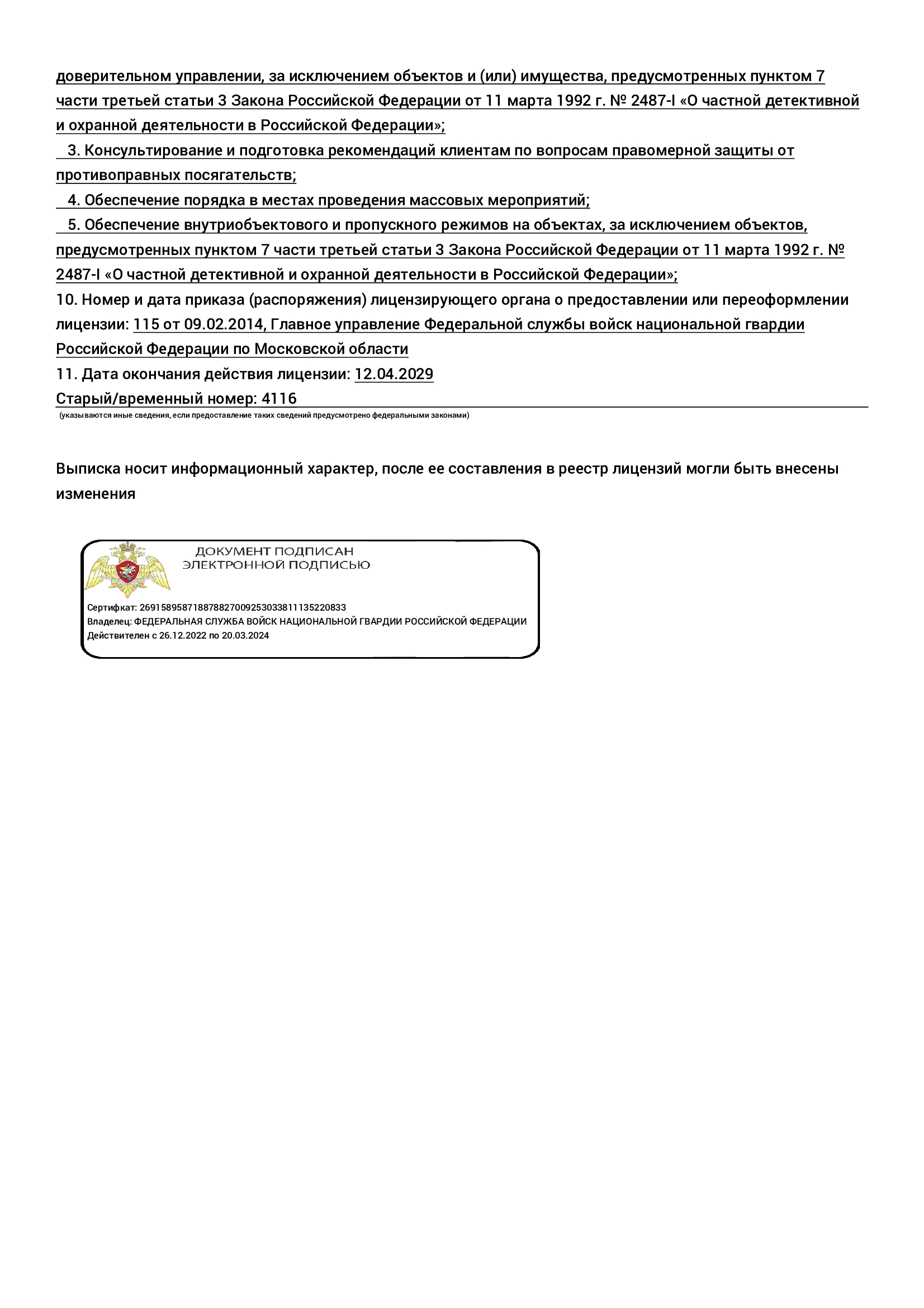 - Обеспечение внутриобъектового и пропускного режимов на объектах, за исключением объектов, предусмотренных пунктом 7 части третьей статьи 3 Закона Российской Федерации «О частной детективной и охранной деятельности в Российской Федерации».